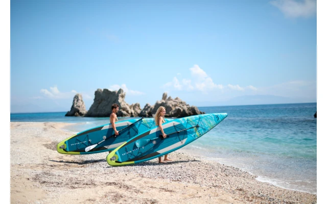 Die beiden Größen von 11’6″ (350 cm) und 12’6″ (381 cm) sind schnell, sehr einfach zu paddeln und halten das Gleichgewicht, auch wenn Sie zum ersten Mal SUP fahren. Die 6-Zoll-Dicke sorgt für unglaubliche Steifigkeit, während das zusätzliche Volumen Sie und Ihr Gepäck oben und trocken hält.