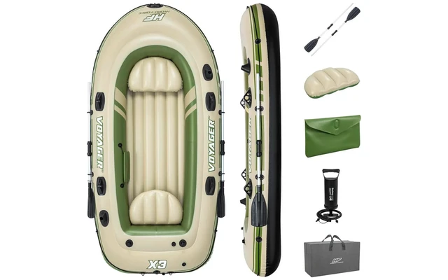 Zubehör inklusive: Paddel, Reparaturset, Pumpe, Aufbewahrungstasche, aufblasbare Kissen