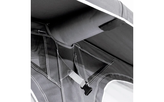 Zur Gewichtsreduzierung und zum Öffnen des Vorzelts können die Front- und Seitenteile mithilfe eines Reißverschlusses abgenommen werden. - Aufblasbares Vorzelt: