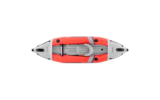 Das Sport-Kajak von Intex ist ein sportliches, robustes Kajak und ideal für tolle Paddeltouren auf Flüssen, Seen oder Meer. Durch die Kombination aus 3-lagigem SuperTough und SuperStrong-Material ist das Boot robust, langlebig und beständig gegen Abrieb, Salzwasser und Sonnenlicht. Der aufblasbare Boden in Stegkonstruktion ermöglicht eine komfortable Handhabung und sorgt für zusätzlichen Auftrieb und Stabilität. Zwei unterschiedlich geformte Finnen für Tief- und Flachwasser unterstützen das Halten des Geradeauskurses und können je nach Anforderung getauscht werden. Der aufblasbare, verstellbare Sitz kann mittels aufblasbaren Polster in seiner Sitzhöhe angepasst und die optimale Position der Rückenlehne kann mittels Gurtsystem eingestellt werden. Weitere Ausstattungsmerkmale sind zwei abnehmbare Angelrutenhalterungen, eine am Boden montierte Fußstütze und eine einstell- und abnehmbare Halterung für ein Handy oder einer GoPro Kamera. An beiden Enden des Kajaks befinden sich des Weiteren stabile Tragegriffe, Halteleinen sowie Stauräume für Zubehör oder wasserdichte Taschen. Durch die integrierten Hochdruck-Ventile ist das Boot schnell aufgepumpt und entleert. TÜV-geprüft.