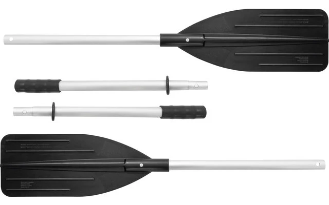 Die Angelhalterungen an beiden Seiten sind ideale Voraussetzungen für Angelausflüge. Für den einfachen Transport ist eine Halteleine rund um das Boot vorhanden. Das Schlauchboot besteht aus stabilem Material (100% Polychlorid) und wird mit aufblasbaren Kissen (bei Größe 3 und 4), zwei hochwertigen Aluminium-Paddel, einer Handpumpe und einem Reparaturset geliefert. Eine Zubehörtasche zum Verstauen von Equipment ist ebenso im Lieferumfang enthalten.