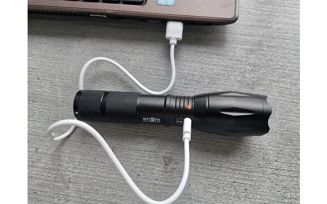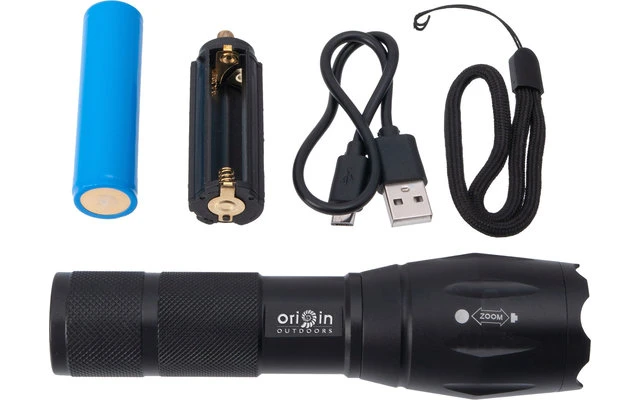 Leistungsstarke und robuste Taschenlampe mit 500 Lumen. Der stufenlos einstellbare Focus lässt sich bequem durch das vor- und zurückschieben des Lampenkopfes einstellen. So lässt sich das Licht entweder streuen, um eine möglichst große Fläche auszuleuchten, oder aber auf einen kleinen Bereich Fokussieren. Die Lampe ist kompakt, liegt gut in der Hand und lässt sich überall verstauen. Sie verfügt über 3 Leuchtstufen sowie Blinklichtmodus und SOS-Funktion. Am Lampenfuß ist eine kleine Öffnung eingearbeitet, an welcher sich eine Handschlaufe anbringen lässt. Über den Mikro-USB-Anschluss kann der 18650-Li-Ionen Akku direkt über die Lampe geladen werden. Wahlweise kann die Lampe aber auch mit 3 x AAA Batterien betrieben werden (nicht ladbar!). Im Lieferumfang enthalten sind 1 x Handschlaufe, 1 x USB-Ladekabel, 1 x 18650 Li-Ion Akku mit Passhülse und ein Batteriehalter für 3 x AAA Batterien.