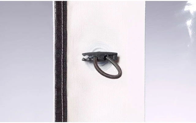 - Alle Wände können aufgerollt und mit seitlich zu öffnenden Schnallen befestigt werden
