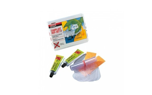 Camping und Freizeit Reparaturset für Gewebe, Gewebeoberflächen, Plastik- und Folienartikel.