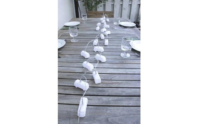 Die 20 kleinen, weißen mini Bullis aus Kunststoff erstrahlen in den Farben Blau, Rot, Orange und Grün, sind ein absoluter Blickfang und sorgen dafür, dass Sie als Gastgeber, Proficamper oder Dekorationsexperte im richtigen Licht erstrahlen. Die Lichterkette sollte nur in Räumen oder bei trockenem Wetter im Außenbereich verwendet werden, da diese nicht wasserdicht ist.
